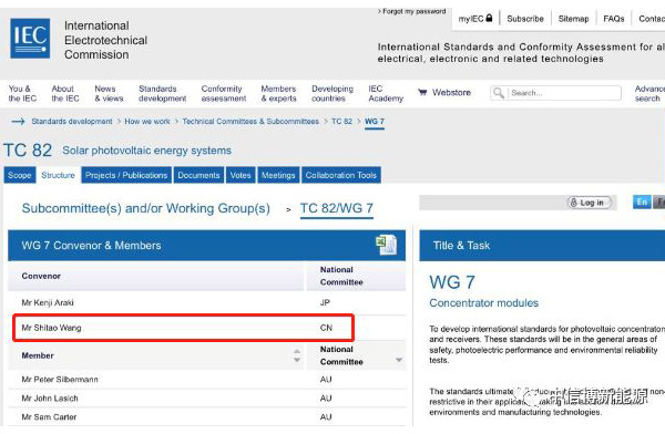 由国际电工委员会太阳能光伏能源系统技术委员会(IEC/TC82)各国成员投票表决,中信博研究院院长王士涛先生被正式任命为第82技术委员会(IEC/TC82)跟踪及聚光光伏标准工作组WG7的召集人。