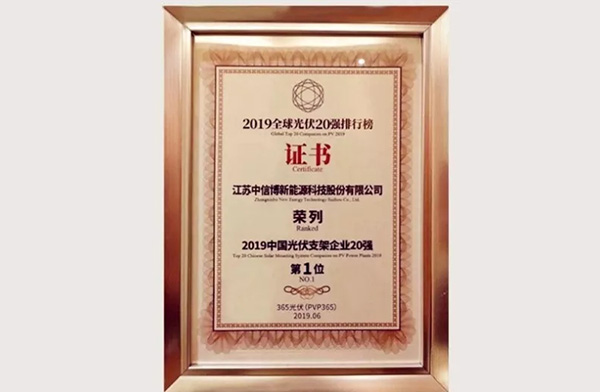 中信博荣登2019中国光伏支架企业20强榜首